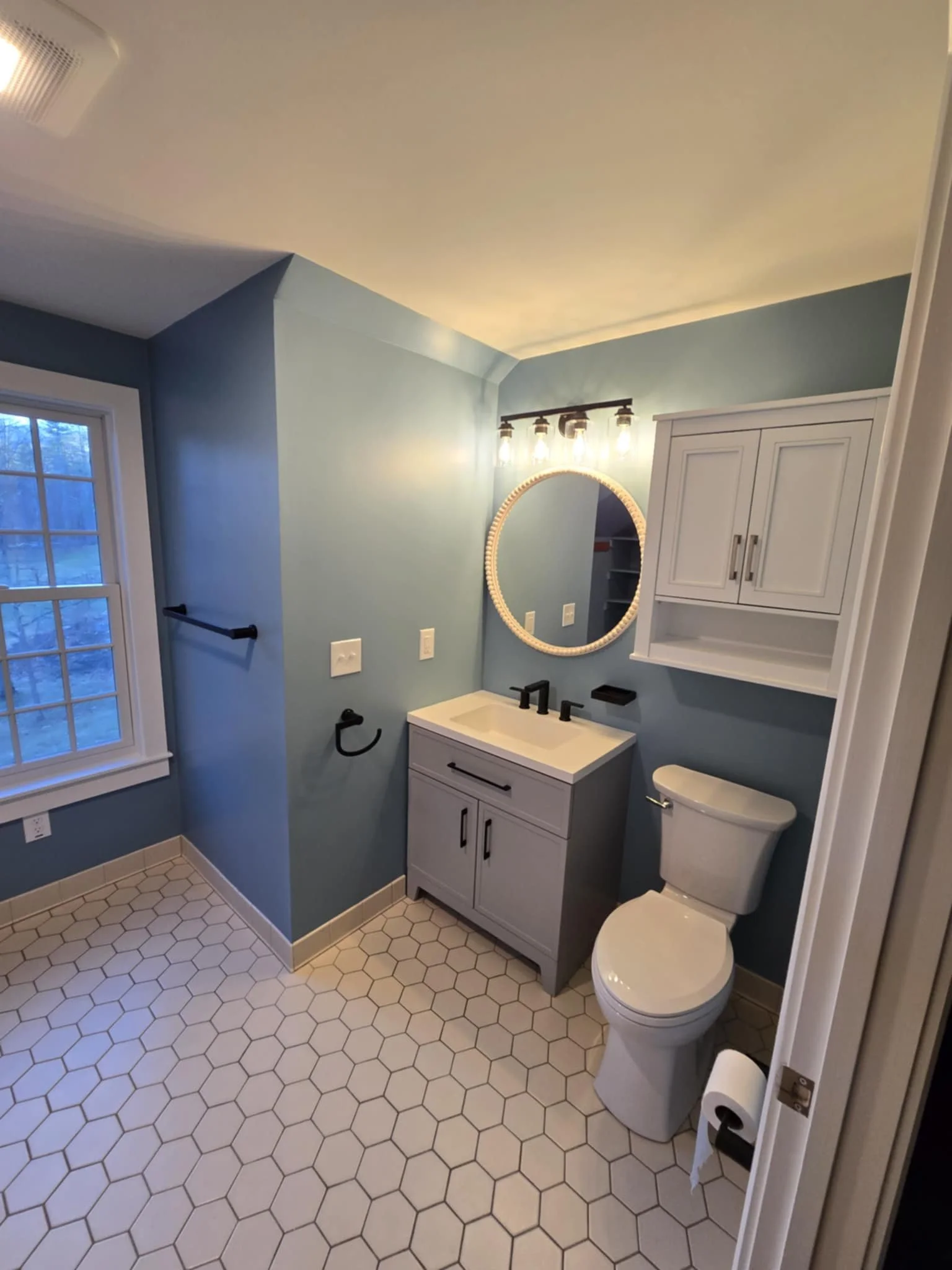 Pownal Church Exterior Paint Arlington Guest Bath Arlington Primary Bath Kitchen Renovation Arlington Kitchen Grafton Cabin Addition Bennington Bedroom Bathroom Remodel Guest Bathroom Remodel Deck Stairs and Stain Bedroom Accent Wall Home Office Update